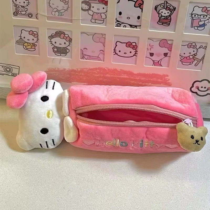 Sanrio-estuche de lápices Kawaii Hello Kitty, muñeco de peluche de Anime, dibujos animados dulces, rosa, Cartucho grande, suministros escolares, bolsa de papelería